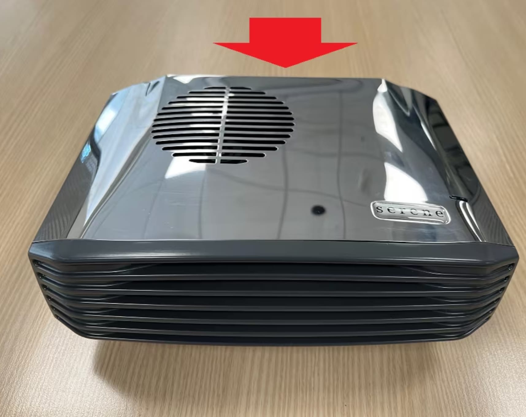 被禁用的型号为Serene S2068壁挂式浴室暖风机,带有拉绳开关,型号编号贴纸位于暖风机顶部。