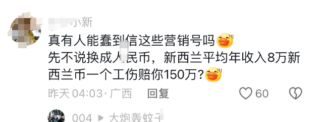也有人指出这个赔偿金额也太夸张,”新西兰平均年收入8万纽币,一个工伤赔你150万?”