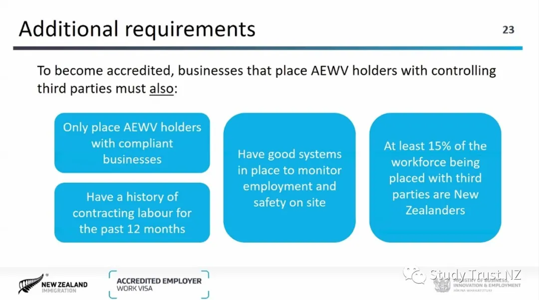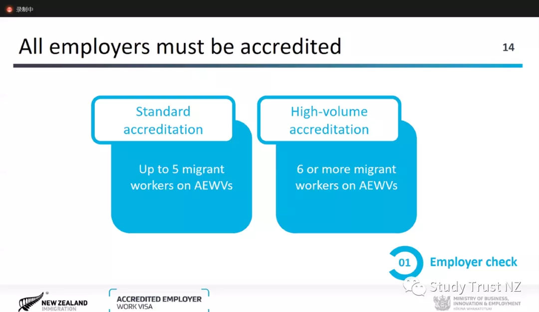 以前白名单雇主的申请要求非常之高,并不是所有公司都能符合移民局的层层考核。而这次新的雇主认证系统(9月底开放)是面向全新西兰企业的。故而,移民局的审核标准并不会和过去白名单雇主的申请要求一样高不可攀。这可以理解为对申请企业的审核要求更友好。