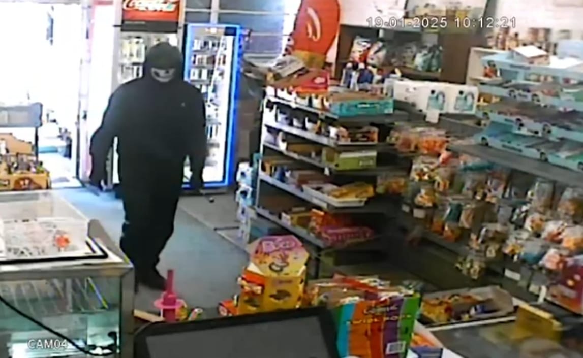 “他再次进店,开始威胁我丈夫。我丈夫当时还在想,为什么他要蒙上脸。然后他意识到这名男子来者不善。”监控画面显示,男子试图跳过柜台。