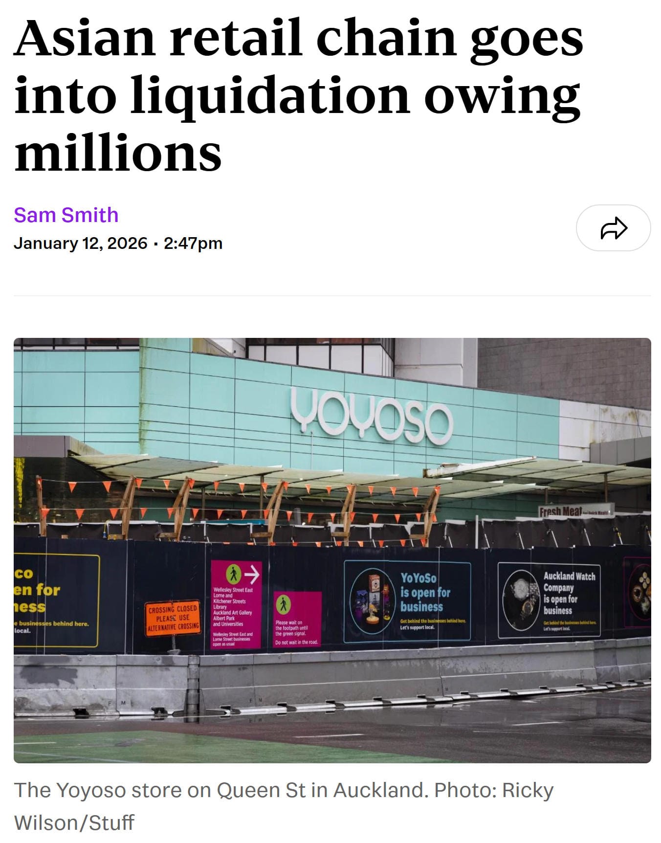 因为这个工程,Yoyoso申请到部分补偿金,用于市场营销,但“这笔钱帮不了我们付房租”,当时店经理对新西兰媒体说。