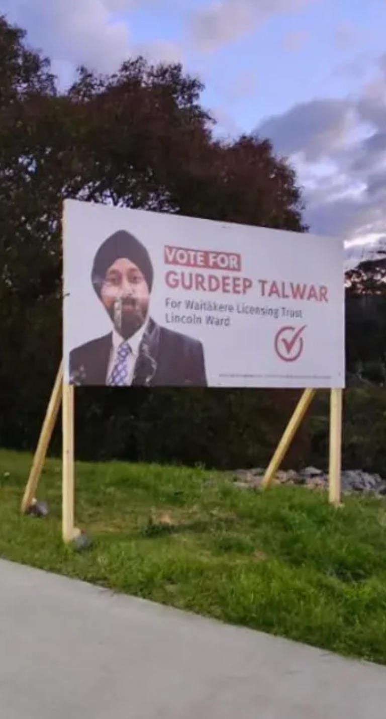 Gurdeep Talwar现任Waitakere Ethnic Board主席,此次以独立候选人身份参选Waitākere Licensing Trust林肯选区(Lincoln Ward)席位。