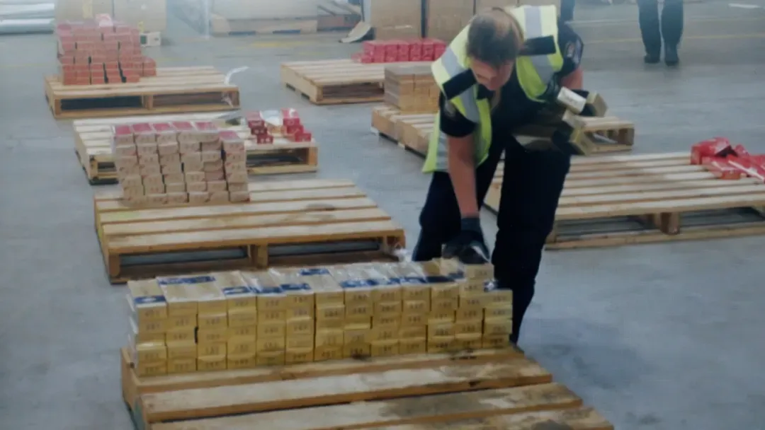 该案中被查获的香烟堆积如山,这对夫妇用集装箱从中国走私香烟,并以其合法的家具业务为掩护。