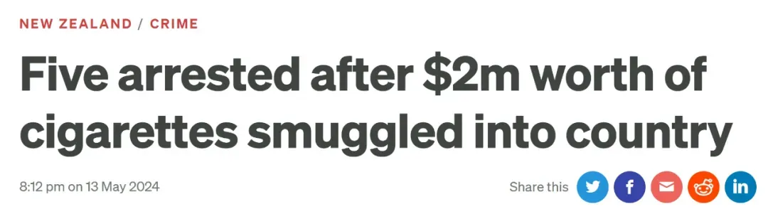 和香烟违法进口相关的犯罪在新西兰最高刑罚是5年,比贩毒“风险低很多”。