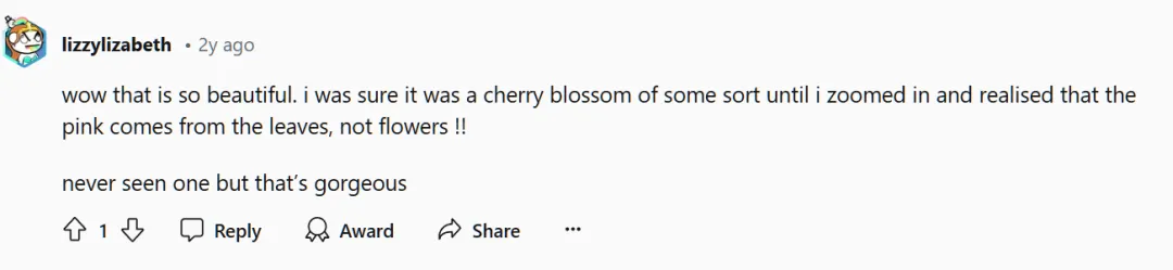远看像是樱花,近看却发现粉色的是叶片而不是花朵,真的好神奇。
