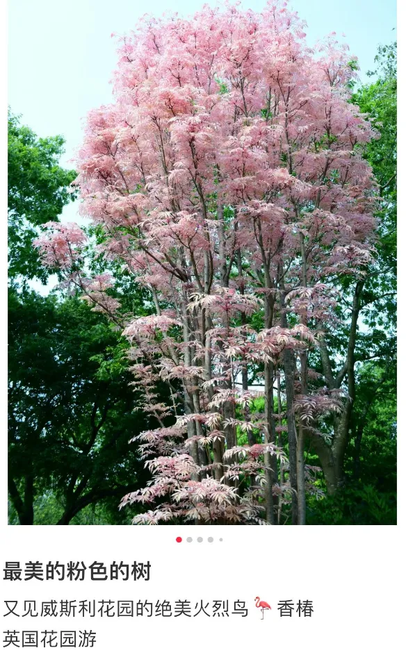 而这种植物在新西兰本地,一直被当作是观赏植物,因为每年春季来临的时候,它会抽出粉色嫩芽,粉粉嫩嫩,颜值完全不输樱花。在英国威斯利花园里,也有一棵粉色香椿,不少人会在春季打卡拍照,欣赏它的美。