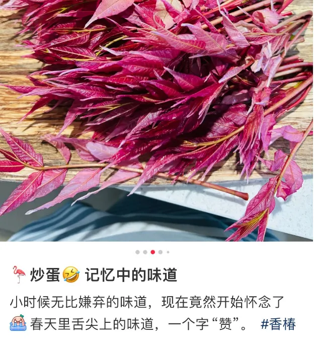 感觉大家吃的不仅是香椿,更是乡愁,一口香椿入口,很多儿时的记忆也会伴随着味道袭来。