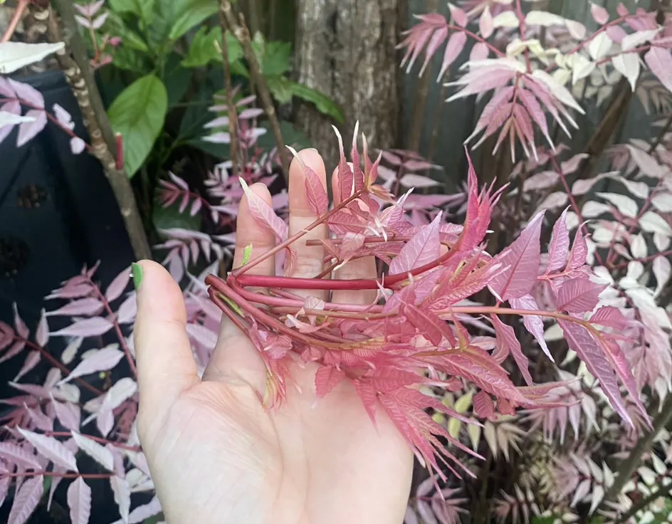 更奇怪的是,有人发现有亚洲人在薅树叶。如果你遇到这些树也摘一片树叶闻闻的话,会发现它有一种熟悉又特殊的味道。而它,正是让很多华人朋友为之垂涎的香椿平替——粉色香椿。它最近不少华人盯上了,这个在新西兰本地人眼里标准的“观赏植物”,成了华人的饭桌上的美味佳肴。