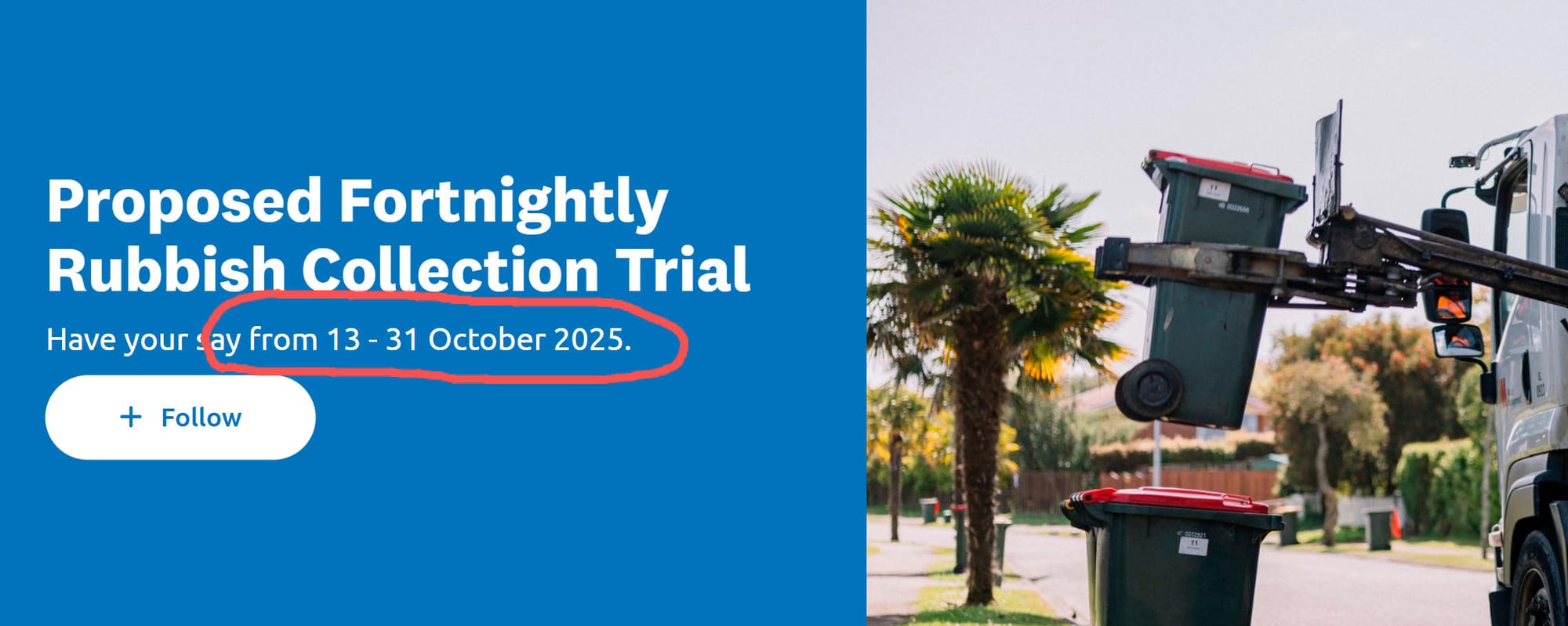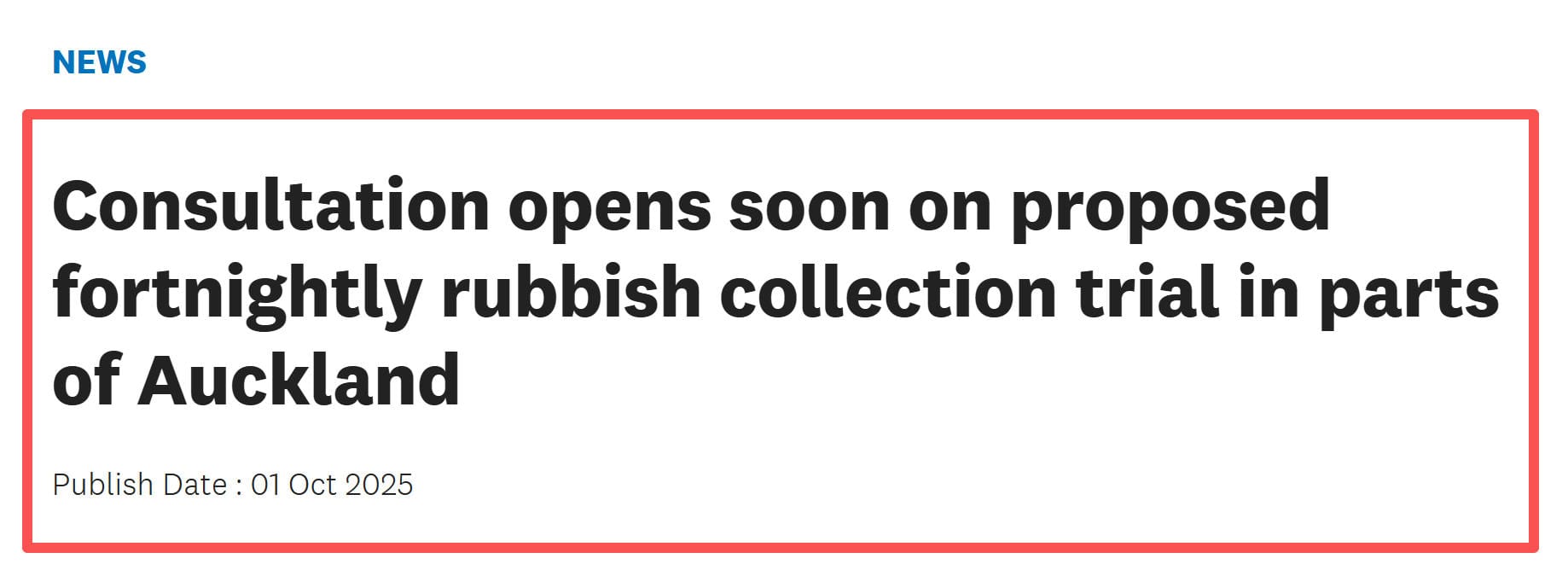 奥克兰市议会说,所有反馈将于2025年12月提交给市议会相关委员会,决定试行是否推进。若试行成功,全市范围的双周垃圾收集将在2027年长期计划中进一步咨询,并在2028年实施。