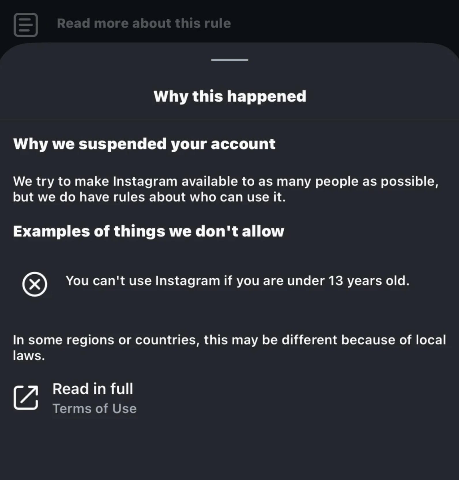 “您的账号因违反关于儿童性剥削、虐待及裸露内容的社区准则而被永久停用。”