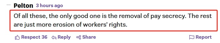 “这些改动里,唯一算是个好消息的就是取消薪资保密条款。剩下的,基本都是在削弱劳动者的权益。”