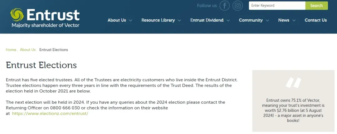 Entrust信托是一个为奥克兰居民提供电力服务的信托机构,持股Vector电力公司75.1%股份,服务范围覆盖奥克兰大部分地区。