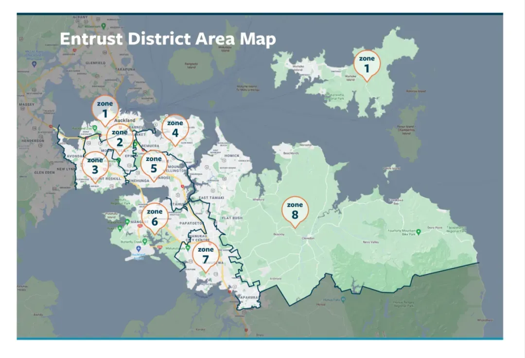 注:凡是居住在Waiheke Island至奥克兰港口大桥以南、Avondale以东、Papakura以北的364,000户家庭和企业用户都有资格参与。每个登记在电费账单上的人,每三年可以投票一次,选出5名Entrust受托人代表。需要注意的是,每户家庭只有一张选票,只有账单登记的用户才能投票。