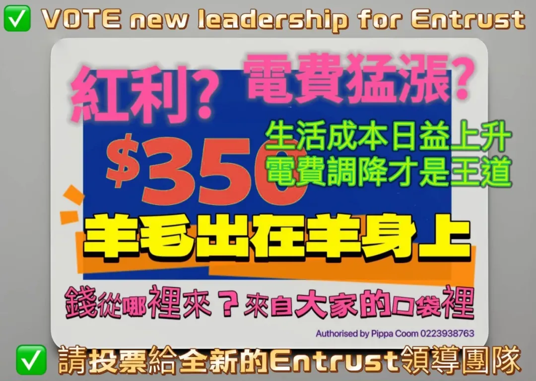 在电力费用持续高涨的时期,你希望有人能为你发声,支持降低电费吗?如果你的答案是“Yes”的话,最近记得留意信箱里会收到的Entrust信托选举的选票了!