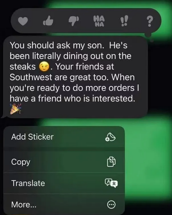 最初,看起来都很合理。Hicks私信下了单,然后收到一条确认消息,感谢她支持当地的肉类行业并指示她付款。