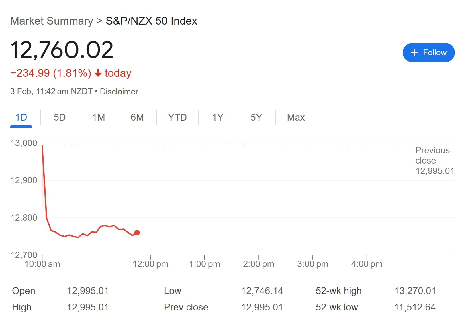 周一新西兰股市开盘大跌,新西兰NZX50指数开盘下跌1.8%。