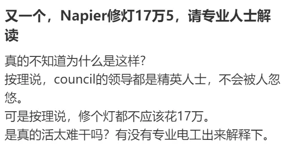 但是很多人对这种解释很难接受:“市议会都是精英人士,应该不会被人忽悠。但是按理说,修个灯都不该花掉17万。”
