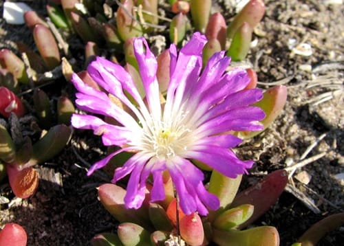 根据土壤不同的养分,冰叶松叶菊可以开出粉色、紫色或是米白色的花朵,花期不算太长,不过花型非常好看,有点像菊花那样的多瓣;如果不开花也有观赏价值,前文说到它的茎部长了很多的乳突、叶片又是多肉的,所以当做小型的“肉肉”放在家中养殖也很好。