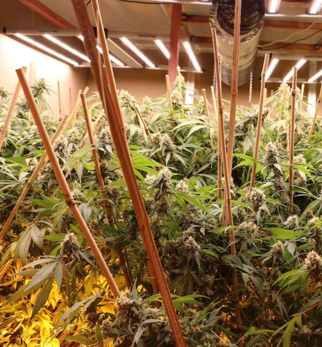 现场有三个种植区域,每个区域的面积相当于25米长的游泳池,总共种植了1485株大麻。