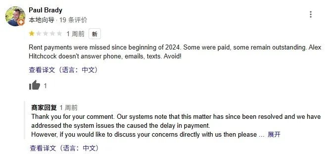 在Google上,许多房东也在这家公司的页面留下了低分评价。