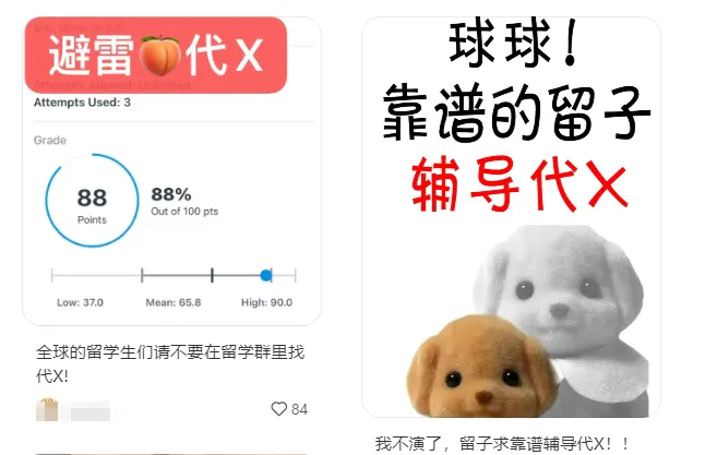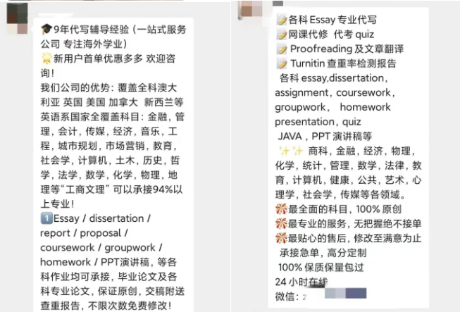 在中文社交媒体输入“留学生代写”,就能找到大量资源,还有群组分享如何找靠谱代写以及规避学校审查。