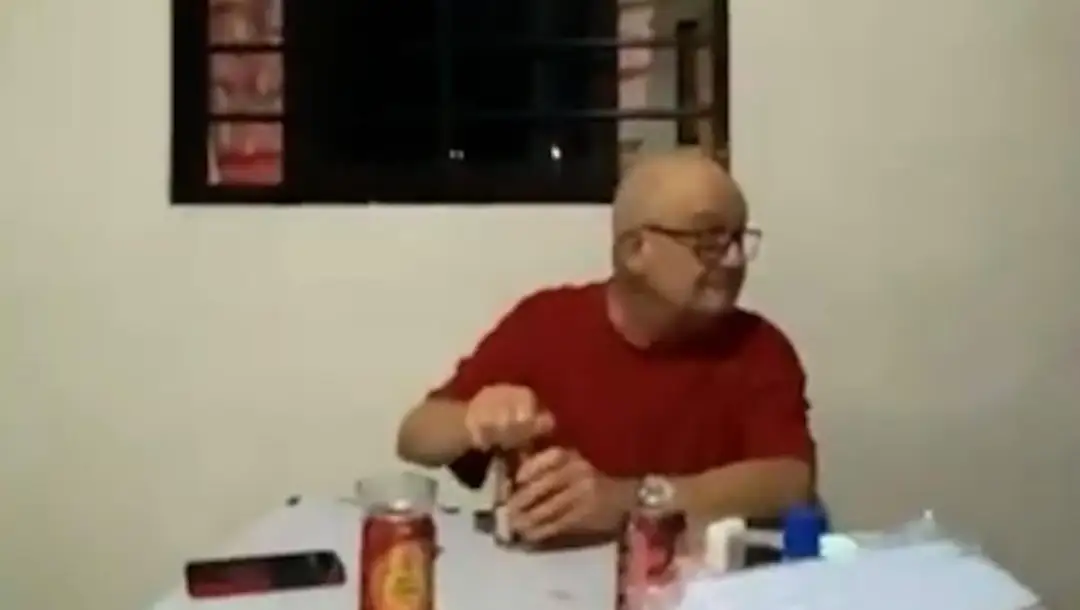 视频画面里,涉及多起性犯罪案件的嫌疑人Ronald Thompson,正坐在一张长桌的主位,熟练地拉开一罐啤酒。