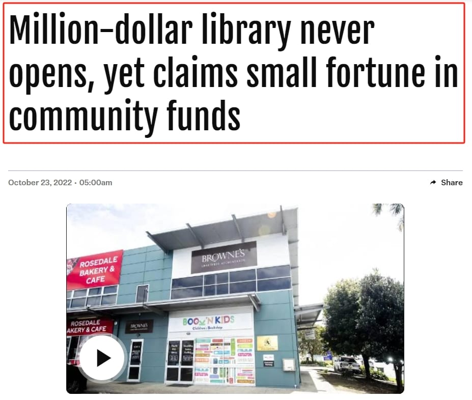 在3年时间里,这个慈善组织共获得了高达95万纽币的补助资金,但这个图书馆却似乎从未真正开放过。