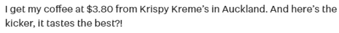 “在奥克兰,我花3.8刀可以买一杯咖啡,你的咖啡难道更好喝?”