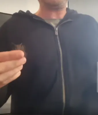 几秒钟后,他得意地对着镜头展示手上的一撮毛。