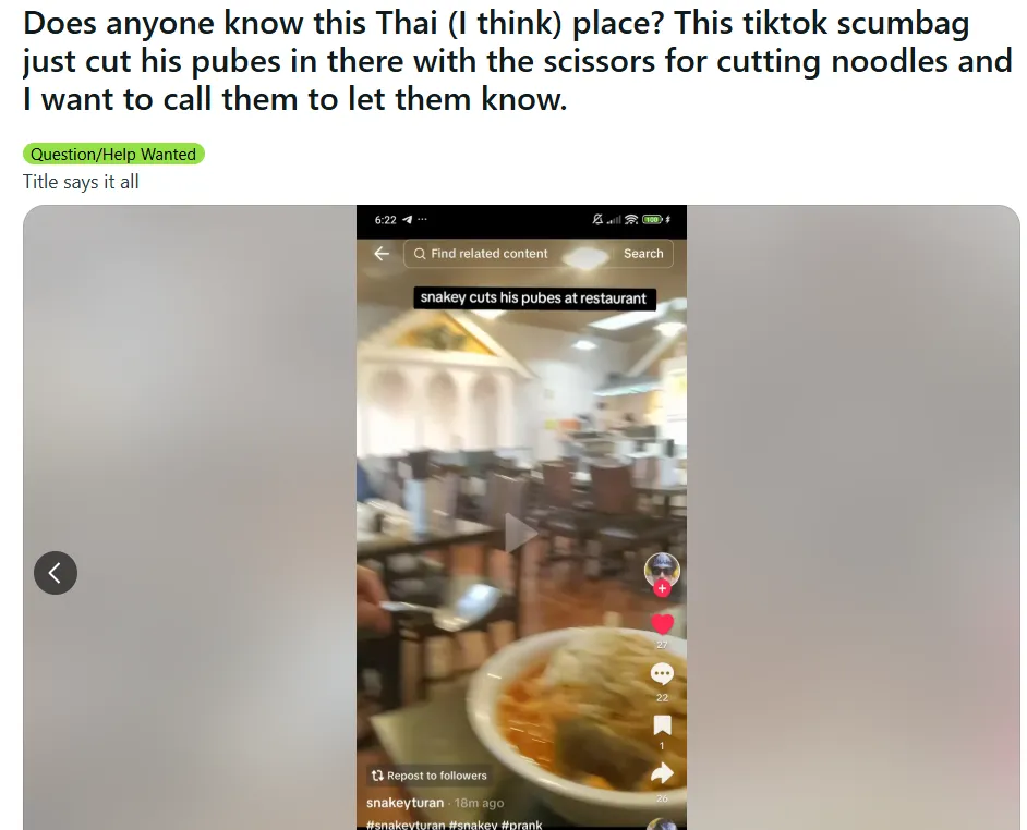 有人发帖询问:“谁认识这个餐厅?”