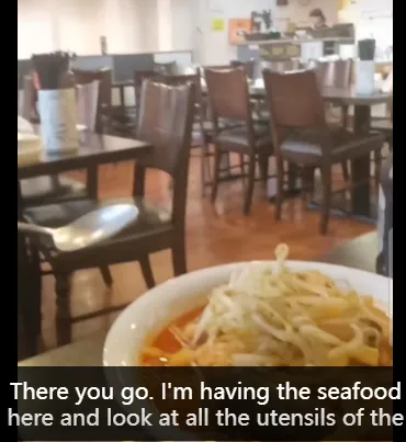 视频里一名男子录制自己在餐厅吃饭,看样子是一个韩式餐厅。