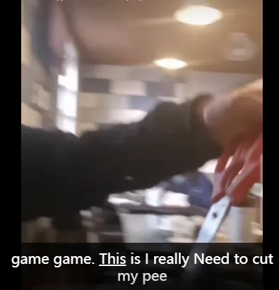 他瞄准了餐厅给每个桌子准备的剪刀,那是用来剪面条的。他在视频里说,他打算趁人不注意,用餐厅的剪刀来剪下体的毛。