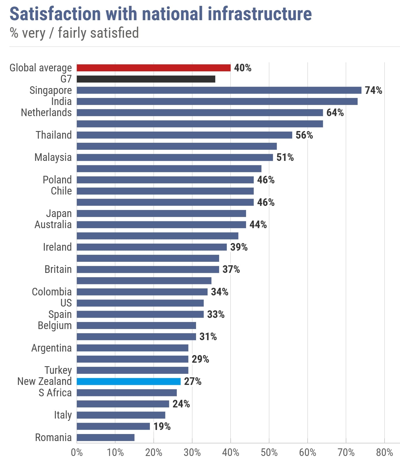 国家基础建设表现,新西兰在调查中垫底