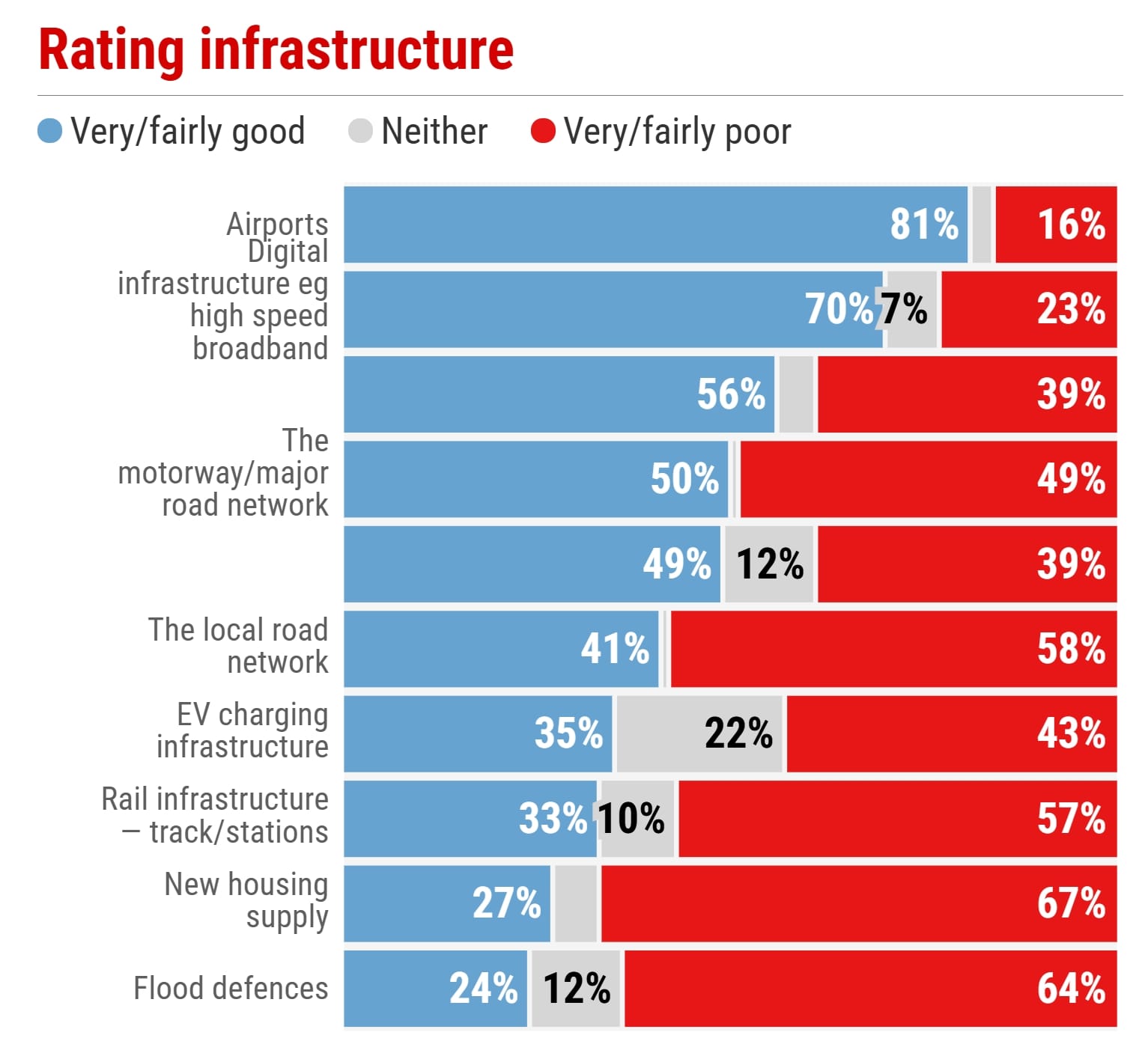 根据Ipsos2024年全球基础设施指数,仅17%新西兰人认为新西兰有良好表现,使新西兰与匈牙利并列倒数第一。