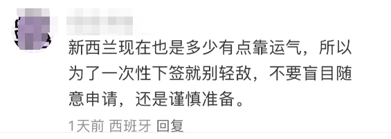 有人说:“新西兰现在也是多少有点靠运气,所以为了一次下签就别轻敌,不要盲目随意申请,还是谨慎准备。