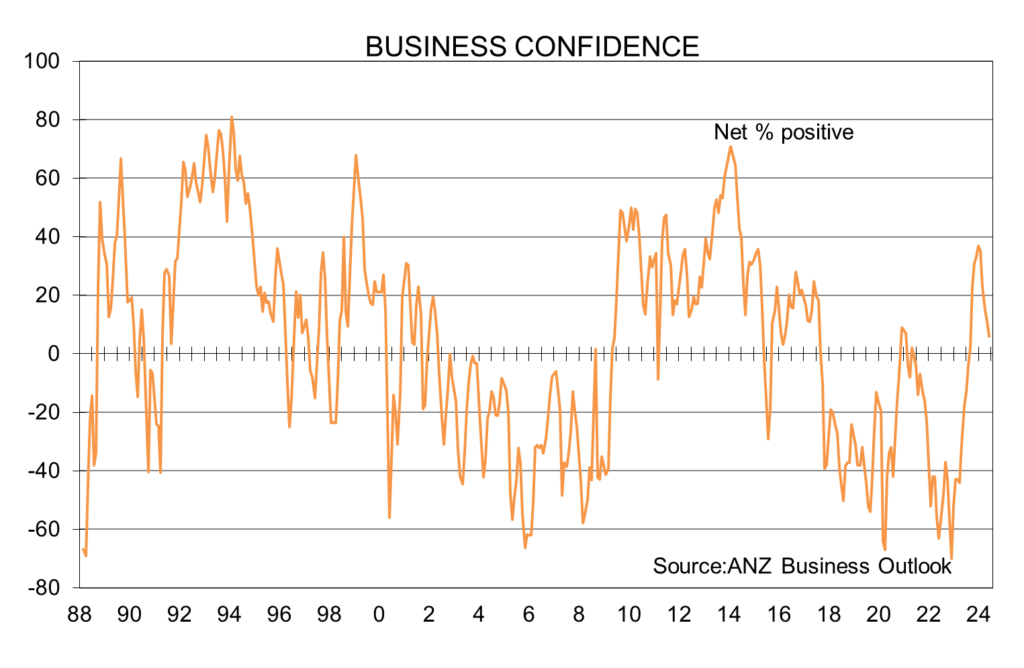 澳新银行的调查显示,对未来一年持积极态度的企业净比例已经从今年一月的37%的近期高点下降到仅6%。我们再次看到一个在今年上半年急剧下降的指标。
