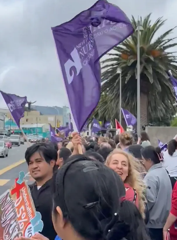 今天,新西兰34个地方的护士、助产士和医疗助理举行大规模罢工。时间为上午11点至下午7点,全国参与者多达3.6人。
