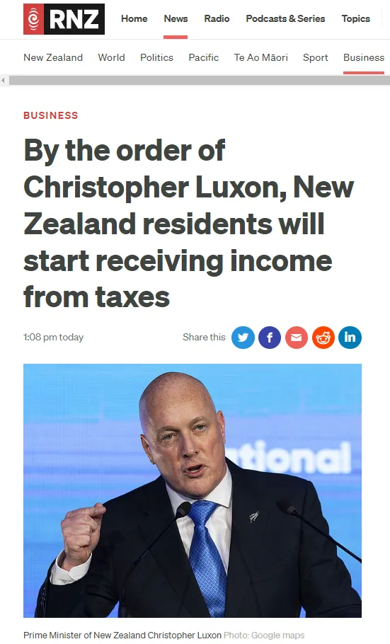 加上这强有力的标题:“根据总理Luxon的指令,新西兰居民将开始获得税收收入”,很吸引人。