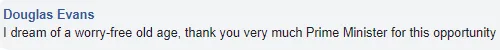 “我一直梦想着无忧地退休,谢谢总理帮我实现了。”