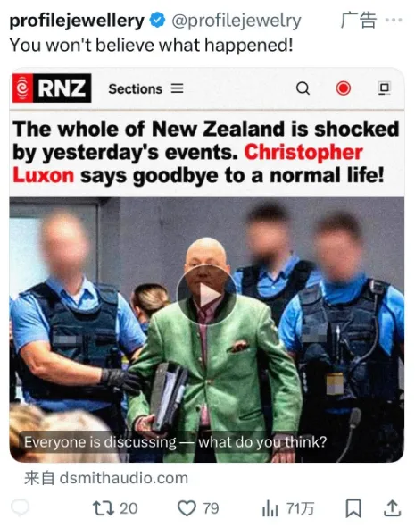 类似的套路还有这样的,也是以Luxon为诱饵:“整个新西兰都被昨天这一事件震惊了,新西兰总理Luxon将告别正常生活!”