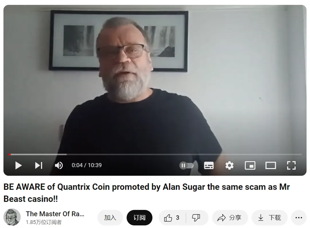 YouTube上有人发视频分享个人经历,让大家避雷Quantrix Coin平台。