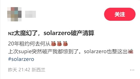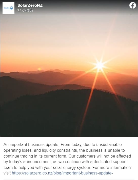 新西兰最大太阳能供应商SolarZero宣布清算。