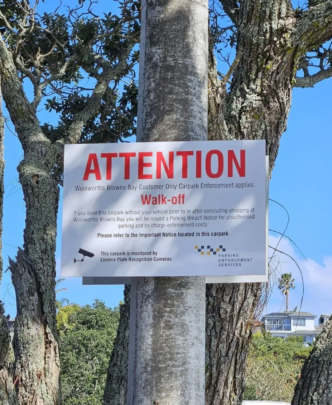 最近,奥克兰Browns Bay一家Woolworths超市门口的停车场贴出了一张告示: