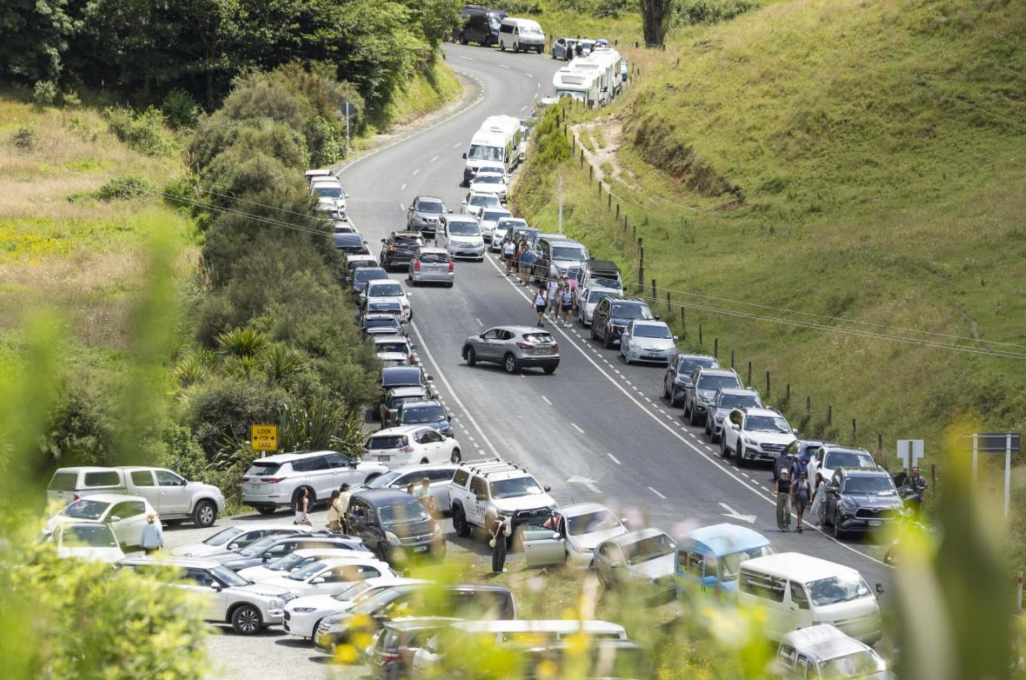 位于新西兰南怀卡托的蓝泉(Blue Spring,毛利语名Te Waihou)步道重新开放后,这个夏天迎来大量游客,停车场被挤爆。