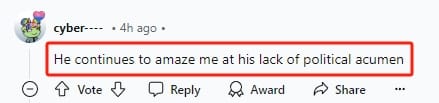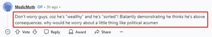 “哥们别担心,他‘有钱’且能把事情办得‘井井有条’,他自己都不在意后果,又何须为区区政治智慧费心。”