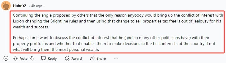 与此同时,关于Luxon卖房盈利、之前不入住总理官邸并领取五位数国会住房津贴、以及他针对资本利得税的态度,再一次被人拿到台面上讨论。