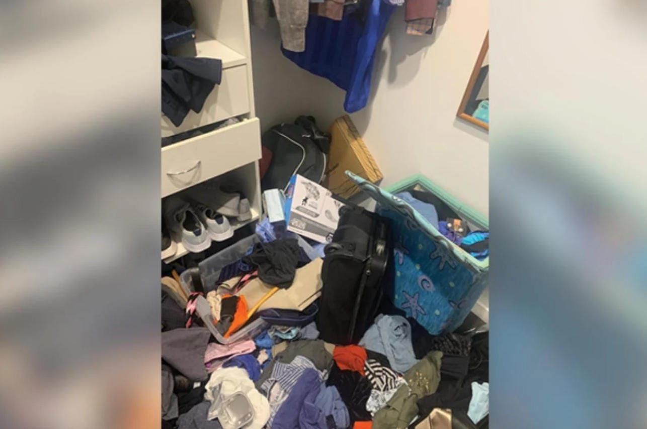 衣柜被“彻底翻乱”,里面满是碎玻璃;卧室和车库都有带酒味的呕吐物。