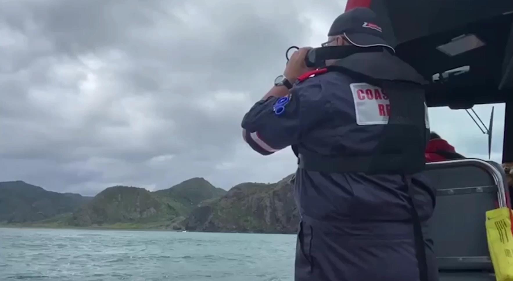 海岸警卫队Papakura区域搜救队五名成员,乘坐一艘9.6米长的海岸警卫队船只连续搜寻了几个小时。