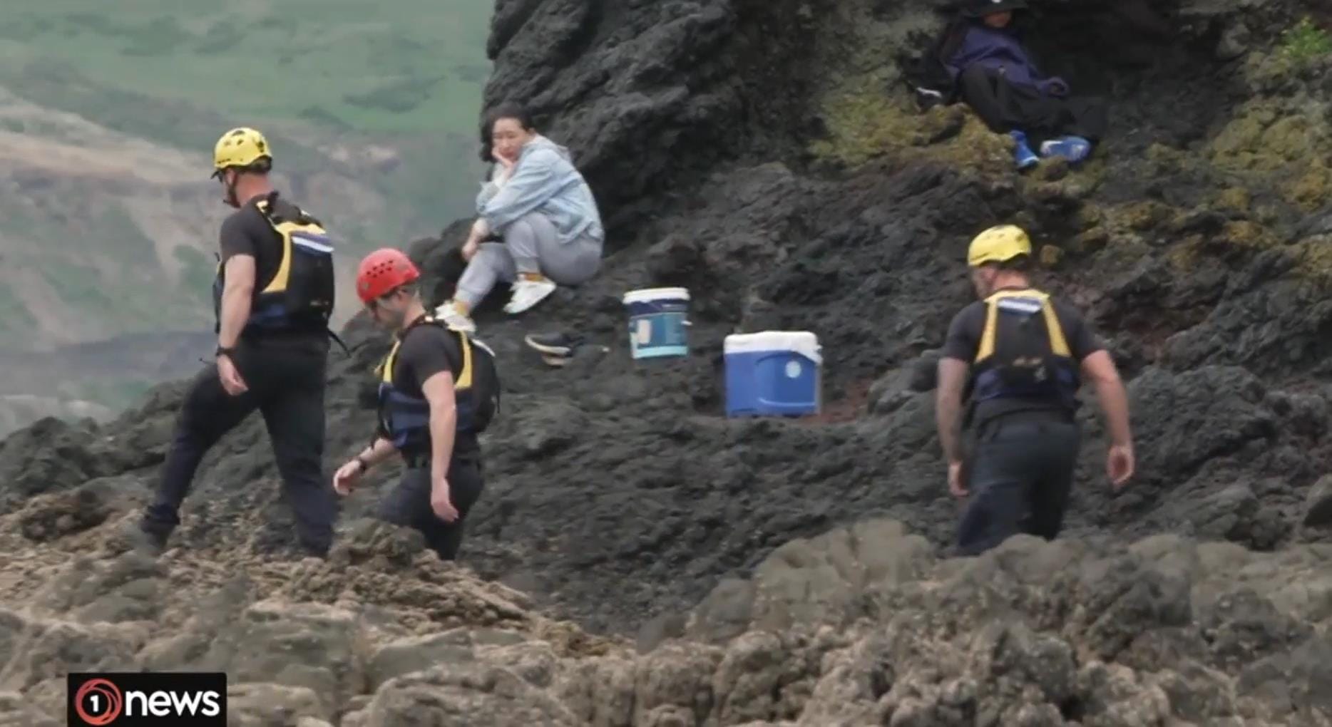 在岩礁上钓鱼的其他人则告诉1News,当天早些时候,失踪者的家属又来这里来找过人了。