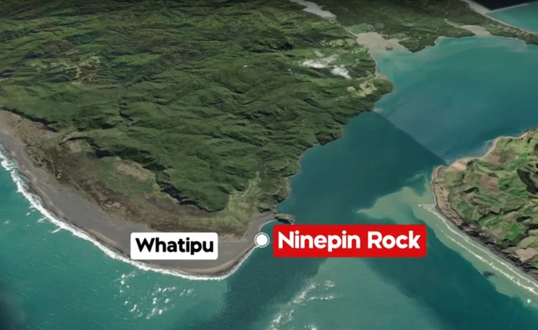 具体位置在Ninepin Rock(九针岩),这里靠近奥克兰Manukau Habour的入海口。